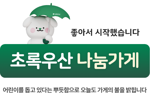어린이를 돕는 가게, 초록우산 나눔가게에 오신 것을 환영합니다.