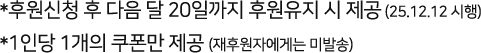같은 후원자님의 정보로 여러 번 후원을 신청하실 경우 중복 발송은 되지 않는 점 양해 부탁드립니다.
