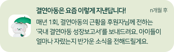 어린이가 행복하고 건강하게 자라날 수 있도록 여러분의 첫 편지로 국내아동결연에 함께해주세요